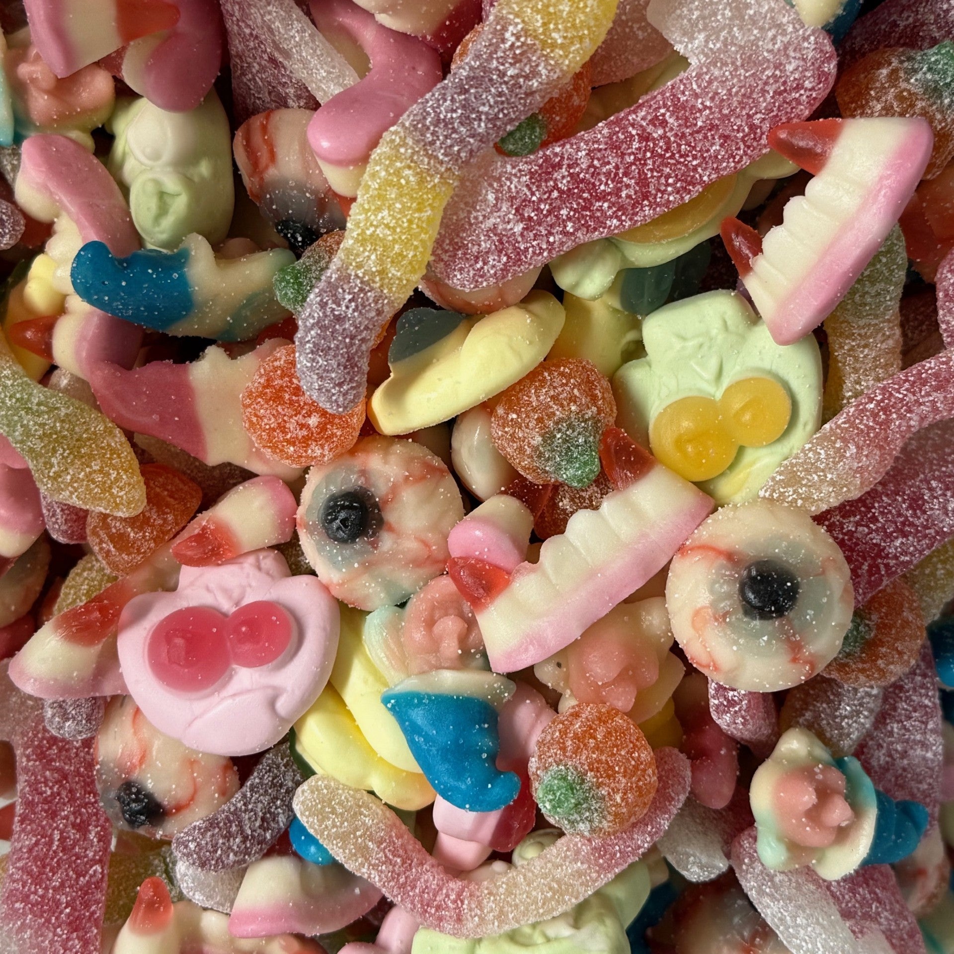 This isn’t your average trick-or-treat bag – it’s SweetSpookz, the ultimate Halloween Pick & Mix that’s bold, loud, and a little bit wicked. Packed with sour fangs, chewy ghouls, and fizzy monsters, every handful hits you with a blast of flavour that’s more thrill than chill.